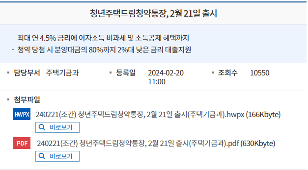 청년주택드림청약통장 은행 서류