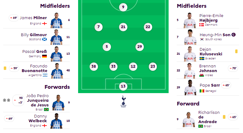 브라이튼은 토트넘을 상대로 전반에만 2골을 넣는 등 훌륭한 경기를 했습니다.