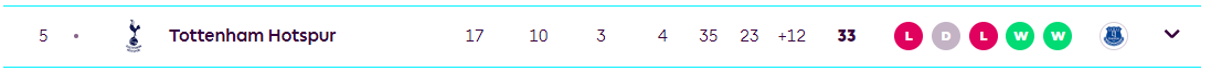 2023-24 프리미어리그 순위에 토트넘은 5위를 기록중입니다.